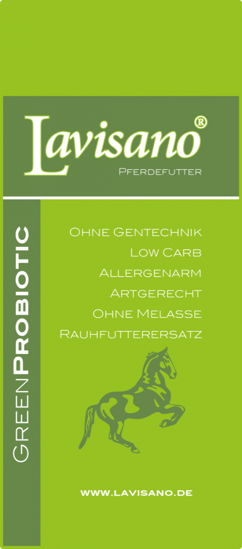 - als Raufutterersatz: täglich 1,0 kg Lavisano GreenProbiotic je 100 kg Soll-Körpergewicht