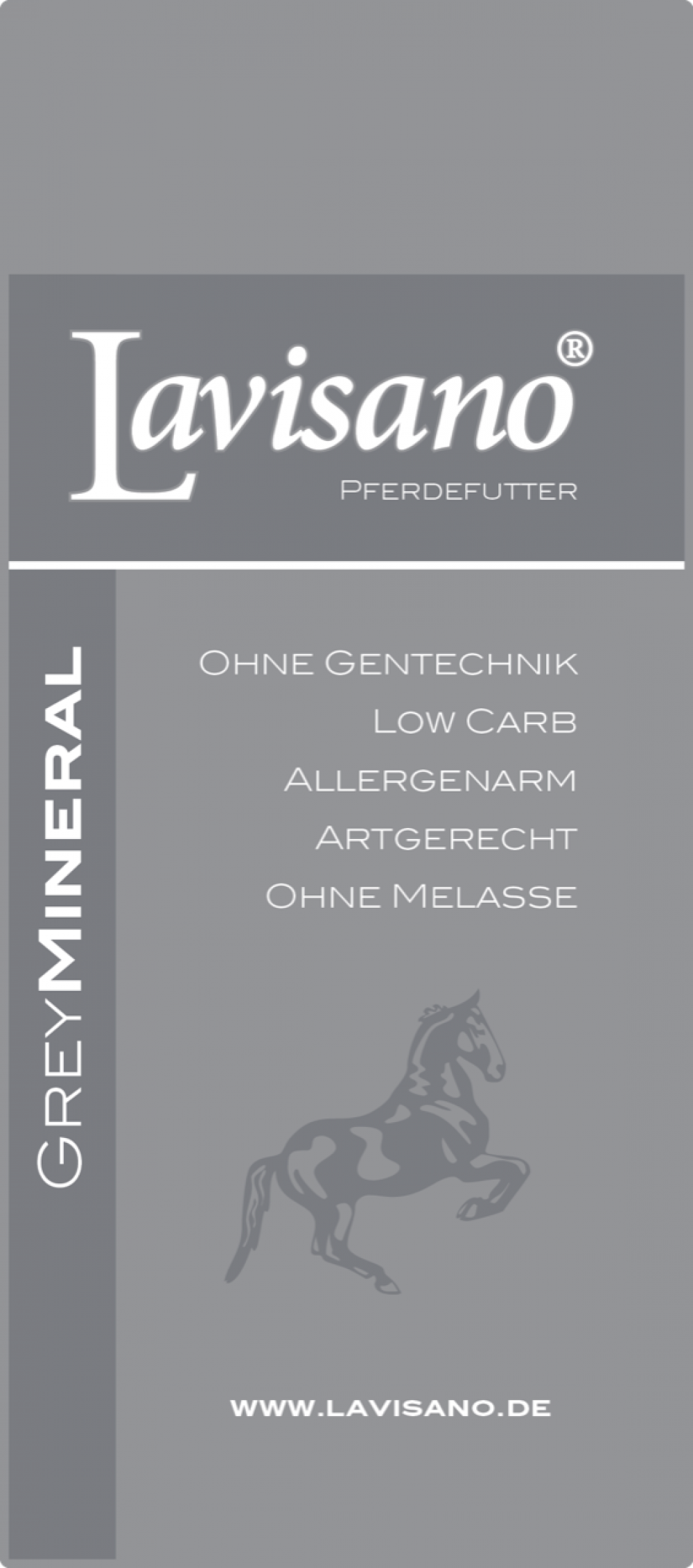 Du möchtest Dein Pferd weiterhin mit Heu füttern, und ein Mineralfutter geben, welches alle ergänzenden Vitalstoffe bietet? Du brauchst ein Mineralfutter, das gern und mit Appetit gefressen wird? Lavisano GreyMineral basiert auf den gleichen Bestandteilen wie Lavisano Pferdefutter, daher wird es gern gefressen und kann auf Aromen oder Zuckerzusätze verzichten, die das Pferd sonst zur Aufnahme „überreden“ müssten. Eine gesunde Basis mit hochwertigen Mineralien, Spurenelementen und Vitaminen gibt Deinem Pferd alles, was es zur gesunden Versorgung braucht. Lavisano GreyMineral stellt sicher, dass auch stark beanspruchte Pferde, oder Pferde die einen unbewussten Mangel beim Grundfutter ausgleichen müssen, bestens versorgt sind.